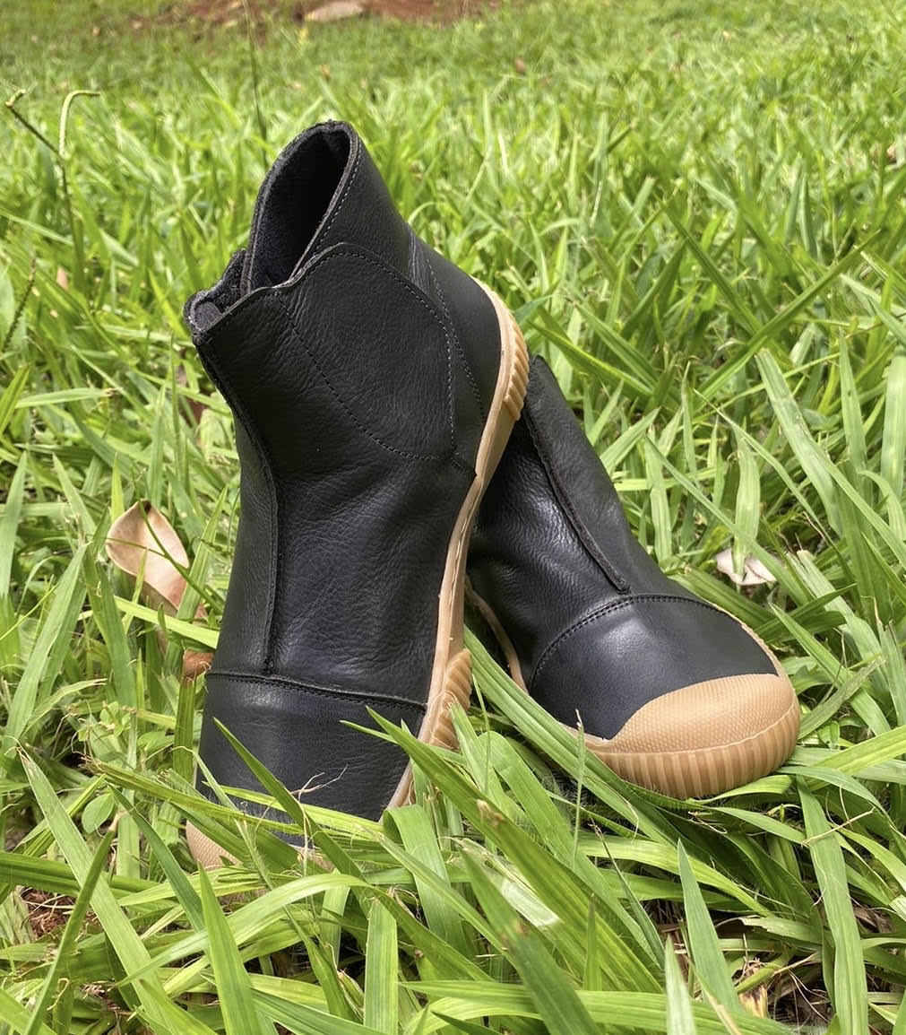 Bota de cano baixo em couro, na cor preta e solado de borracha antiderrapante.