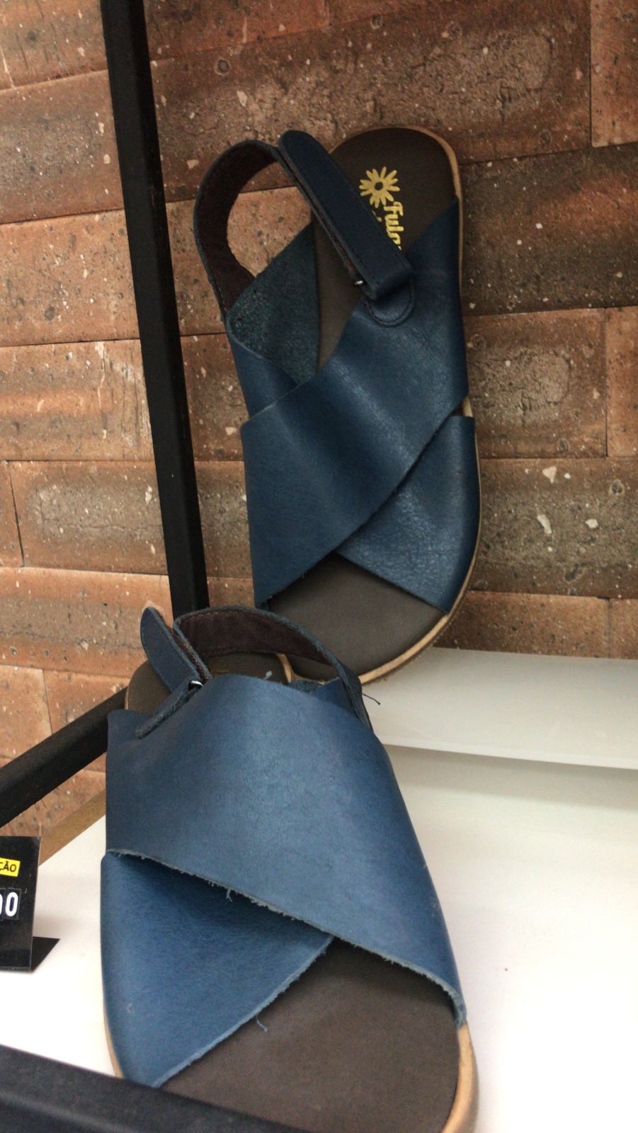 Sandálias em couro macio azul marinho, palmilha extra macia, solado em borracha reciclada antiderrapante.