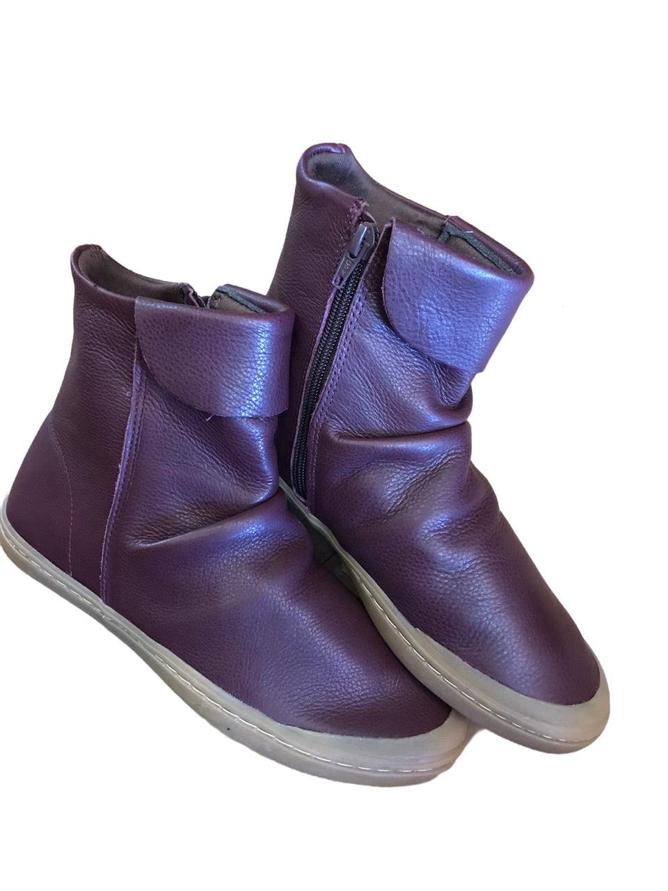 Bota em couro, na cor açai. Solado em borracha. Interior acolchoado, super macia e leve.