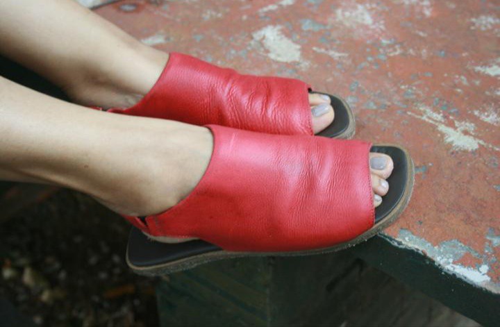 Sandalia em couro na cor vermelha com o solado emborrachado.